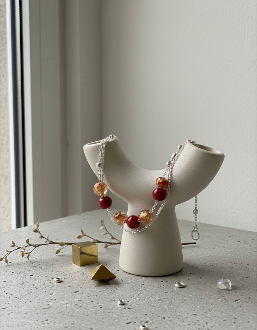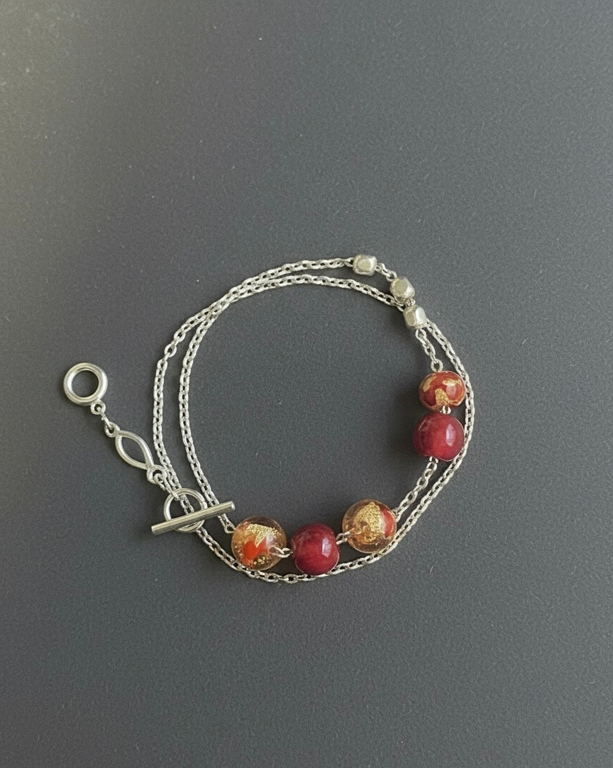 Murano 925 * Beads di Vetro di Murano originali: Ogni sfera racchiude al suo interno foglie d'oro sublimate, che creano un effetto scintillante e infuocato,...